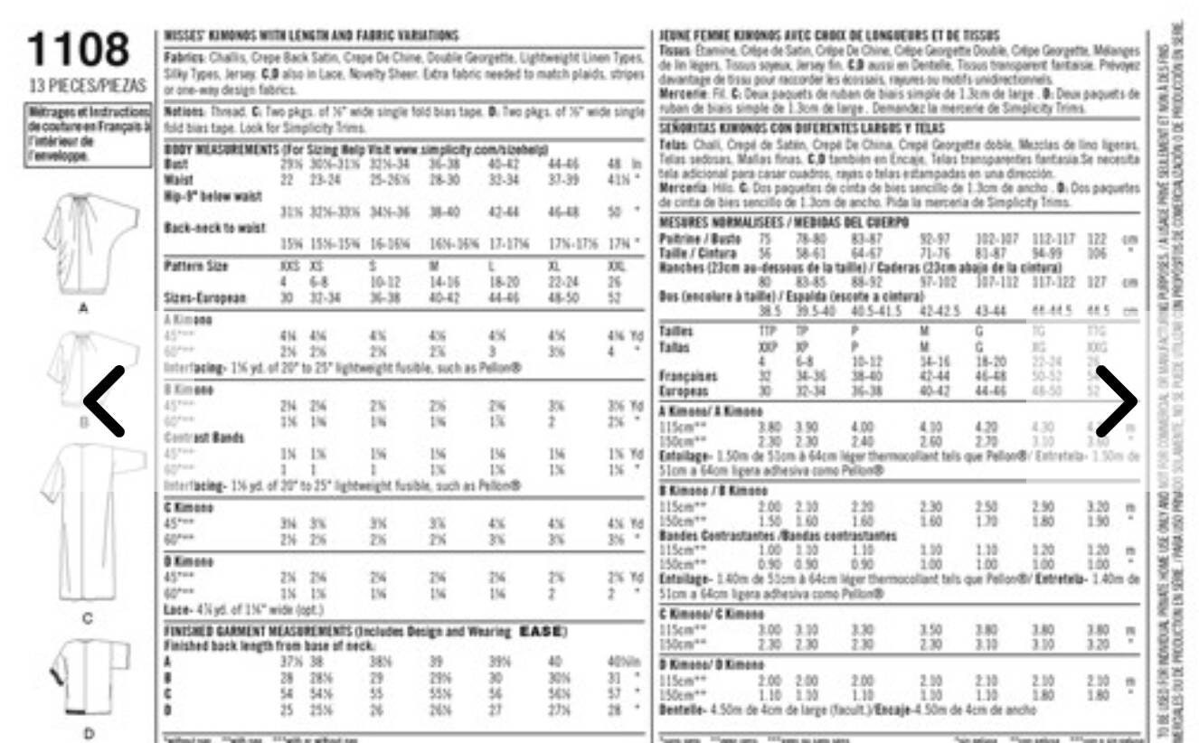 Simplicity Sewing Pattern 1108 Misses Kimono S In Size A Xxs Xs S M L Xl Xxl Paper White Amazon Co Uk Home Kitchen